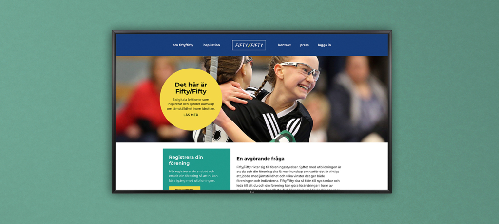 Bigtail har tagit fram webben för Fifty/Fifty – en online-utbildning som inspirerar och sprider kunskap om jämställdhet inom idrotten. I sex digitala lektioner mixas inspiration, fakta, diskussion och reflektion med fokus på vad du och din förening vinner på att bli mer jämställda. Utbildningen riktar sig i första hand till föreningsstyrelser. Vi har satt det grafiska manéret, tagit fram logotypen och arbetat fram själva namnet.