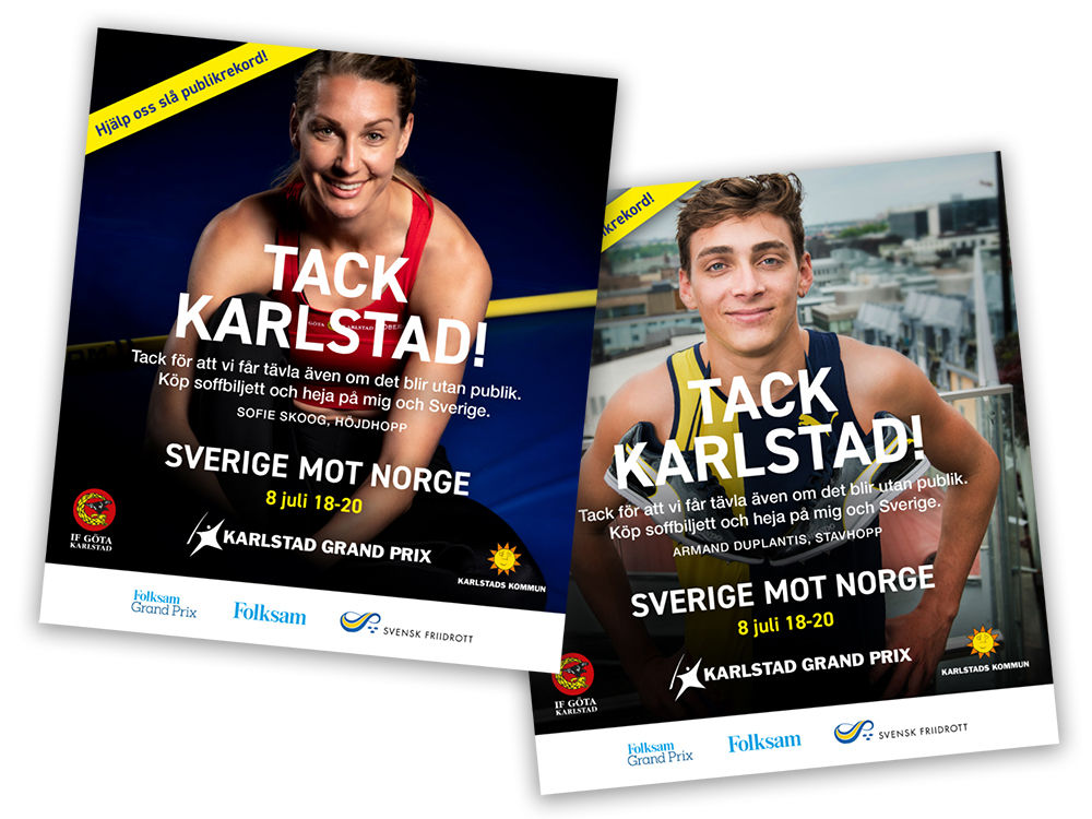 Vi har hjälp till med bilder till sociala medier, printannonser mm. Målet är att säga tack från alla aktiva, få Karlstadsbor att känna stolthet samt att sälja soffbiljetter.