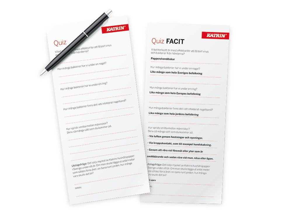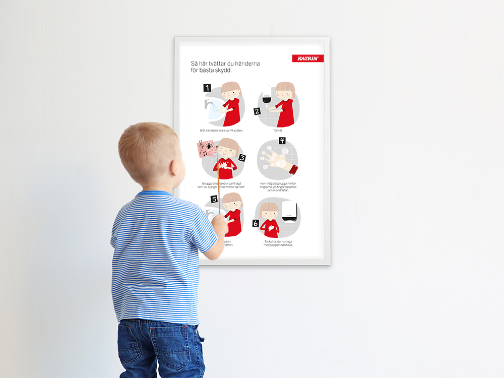 Att lära barn och unga om hygien är viktigare än någonsin och eftersom Katrin är proffs på detta ville de göra en kampanj riktad mot skolor i Sverige, Norge och Danmark. Vi har hjälpt dem att ta fram materialet som består av bland annat utbildningsbroschyr, folder, lärarhandbok, säljblad, affischer, klistermärken och diplom. Utbildningen genomförs av antingen en representant från Katrin eller så kan lärare själva utbilda sina elever. Materialet är uppdelat mot yngre respektive äldre elever eftersom man vill gå ut brett bland alla skolor. Dessutom kopplas sociala medier på genom LinkedIn för att få ytterligare spridning.