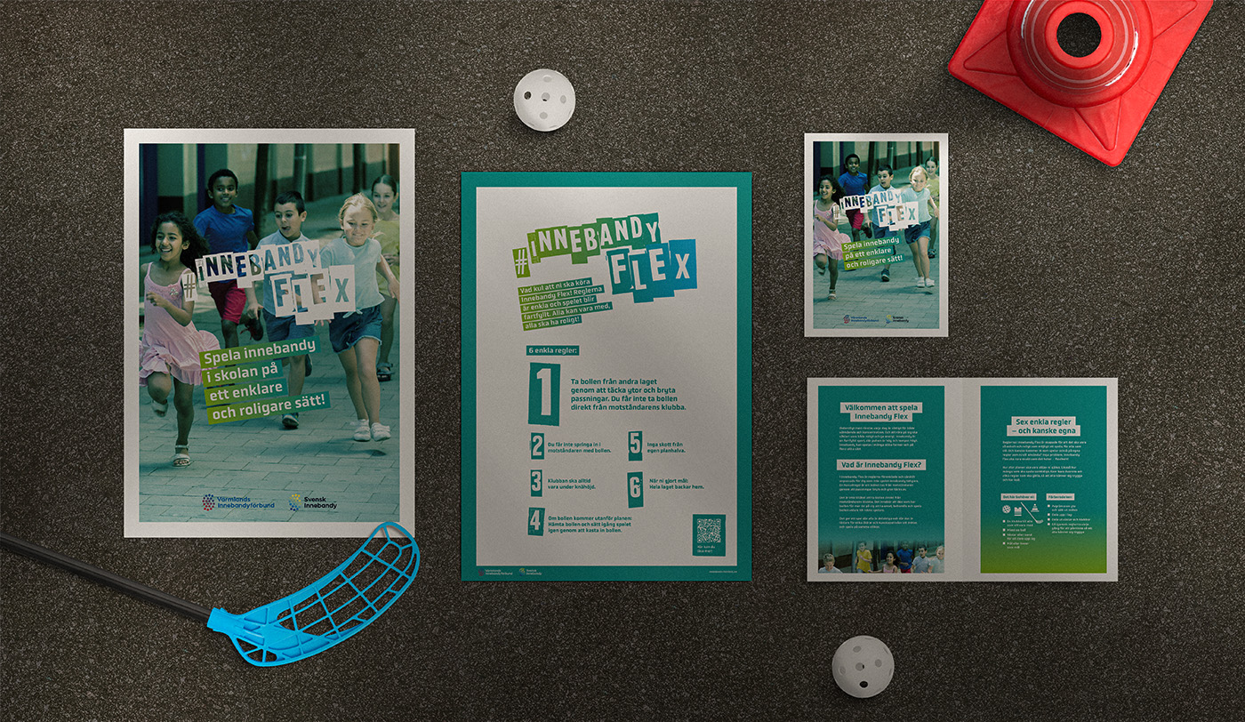 Värmlandsidrotten och Värmlands Innebandyförbund tar nu ett grepp om detta och under 2019 lanserades ett nytt upplägg, InnebandyFlex, för att träna och spela innebandy. Vi har hjälpt dem att ta fram en identitet i form av logotyp och grafiska riktlinjer. Vi har också tagit fram tre filmer tillsammans med Make My Day som ska locka målgruppen som i första steget är tjejer. InnebandyFlex är inte som traditionell innebandy.