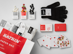 Exempel på giveaways till Katrins kampanj för deras nydesignade förpackningar: